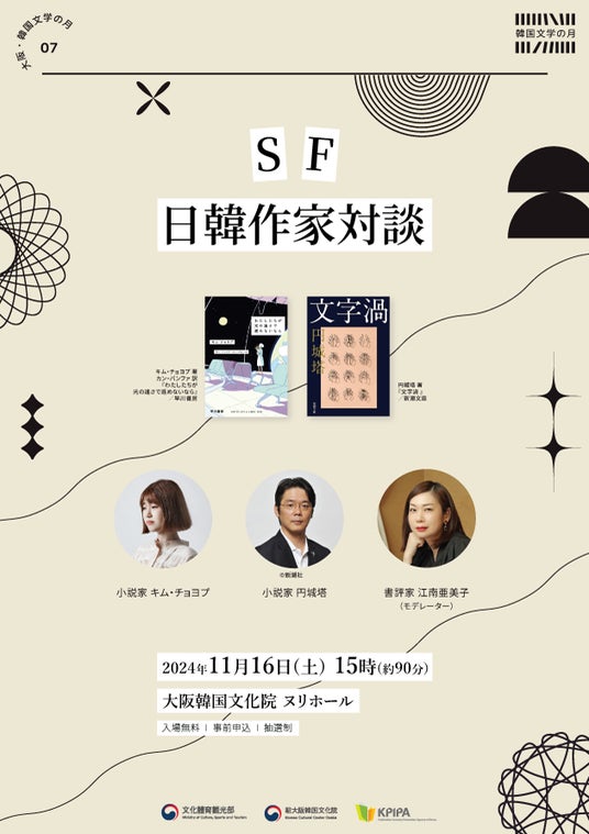 駐大阪韓国文化院は、11月16日(土)、大阪市内にある大阪韓国文化院・ヌリホールにて、韓国と日本のSF小説家による日韓SF作家対談 「キム・チョヨプ X 円城塔」を開催する。