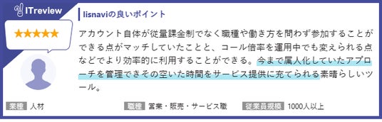 lisnaviは、5点満点中4.2点といった高評価をいただいております。いただいたコメントを一部紹介いたします。
