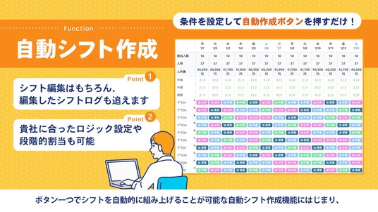 管理画面の操作確認などは無料でお試しいただけるため、その上でご検討いただくことが可能です。また、シフト管理を行う上で必要な出勤要請・労務管理・概算人件費計算・自動シフト作成機能を備えており、累計で20,000社以上の企業様に導入いただいています。