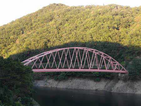 知明さくら橋は、一庫ダムに接する兵庫県立一庫公園の西側に架橋されている橋長136m、幅員7.2mのアーチ橋で、昭和52年12月に架設され、44年経過している。