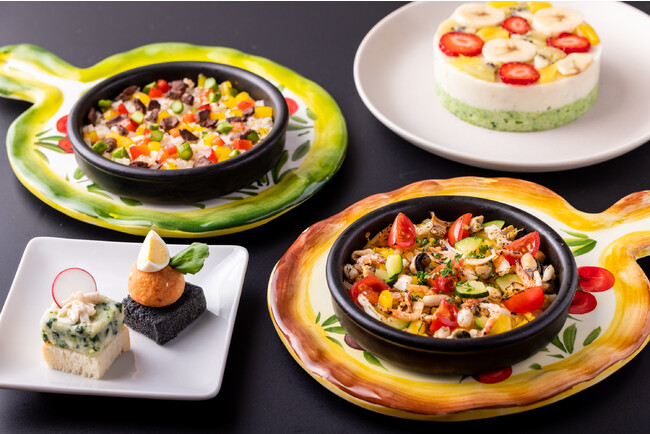 カラフルでユニークな野菜を積極的に生産している立川市の「小山農園」から食材提供を受け、カラフルさを最大限に活かしたバーニャカウダなど、見た目から楽しめるお料理を提供します。また、地元立川のクラフトビール「TACHIHI BREWERY」を導入し、飲み比べに使用するグラスには、色鮮やかな石川県の「九谷焼」を使用。お酒を飲めない人のためにも、フルーツやハーブの色彩を活かした美しいビジュアルのモクテルを提供します。