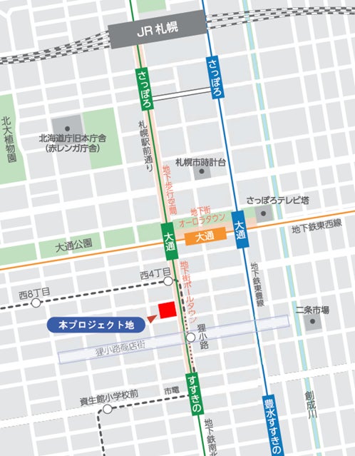 本計画は2023年5月末に閉館したダイビルPIVOT他の跡地に新ビルを建設するものです。札幌市内では大規模再開発が続々と進み国内外からの観光客もより多く訪れ、周辺街区は一層賑わいが増していくものと期待されます。