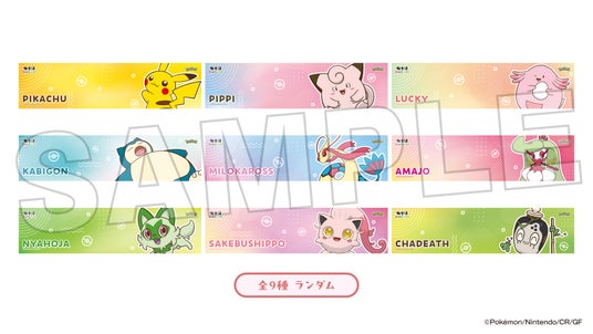 店舗ご入館時に、【入館料金+ポケモンかいふくのゆ プラスセット】をご購入いただいた方に、9種類のポケモンのオリジナルマフラータオルをランダムでお渡しします。