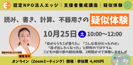 正しい理解やサポート体制が社会全体に根付くよう、ディスレクシア当事者団体である認定NPO法人エッジは、10月ディスレクシア月間に啓発イベントとセミナーを実施します。(※3)