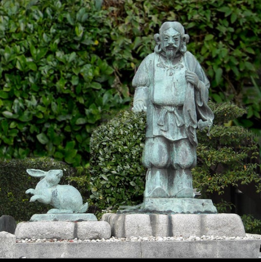 大黒天と白兎の像古事記に登場する『因幡の白兎』は、とても有名なお話です。出雲大社にも同じように大国主命と白兎の像があります。