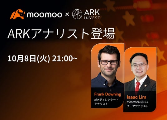 moomoo証券株式会社(ムームー、本社:東京都渋谷区、代表取締役社長:伊澤フランシスコ、以下「moomoo証券」)は日本時間の10月8日21:00より、「moomoo」アプリ上で、投資界で「米ハイテク株の女王」と称されるキャシー・ウッド氏が率いる米運用会社アーク・インベストメント・マネジメント(以下「ARK」)のアナリストを招いて、AI(人工知能)などの革命的技術分野への投資をテーマに無料でライブ配信を行います。