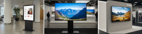 ・65型/75型の2サイズ展開、壁掛け・昇降スタンド設置に対応