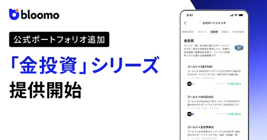 世界基準の資産運用サービスを展開するブルーモ証券株式会社(本社:東京都中央区、代表取締役CEO:中村仁、以下「ブルーモ証券」)は、米国株・ETF投資アプリ「ブルーモ」にて本日よりゴールド(金)を中核に据えた公式ポートフォリオ「金投資」シリーズ全10種類の提供を開始したことをお知らせします。