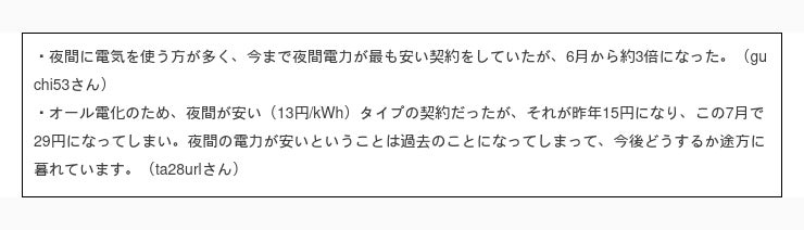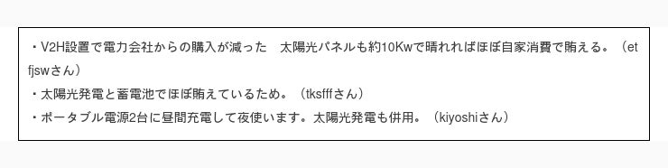 V2Hや蓄電池を導入することで安くなった!というコメントが複数寄せられました。