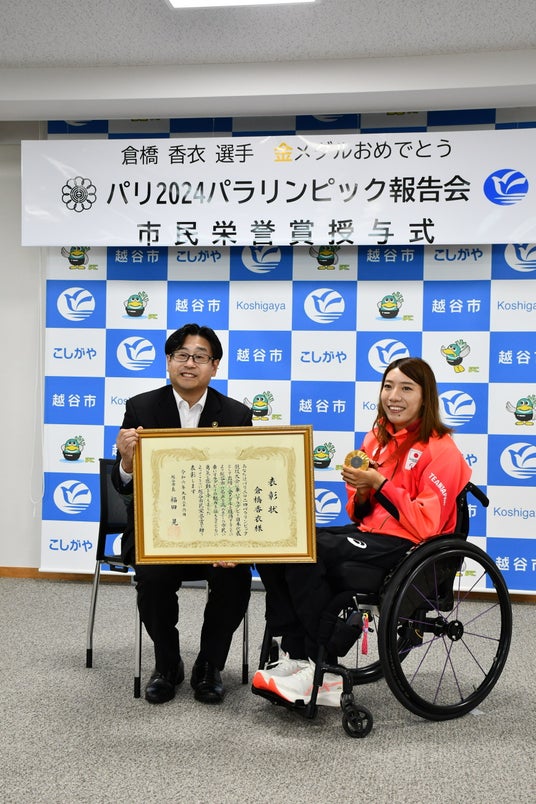 越谷市は、パリ2024パラリンピック競技大会 車いすラグビー日本代表として、金メダルを獲得した倉橋香衣選手(越谷市在住)に市民栄誉賞を贈りました。