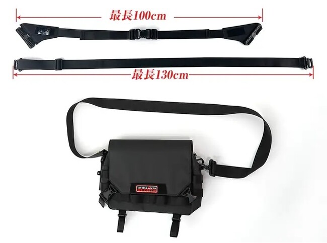 ロングショルダーストラップは約63cmから最長約130cmまで調節可能です。