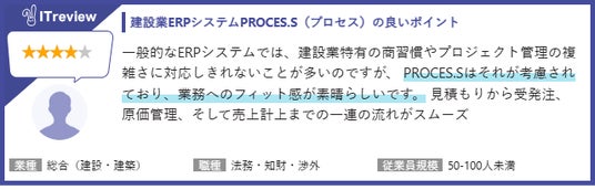 建設業ERPシステム「PROCES.S(プロセス)」のレビューページはこちらです。