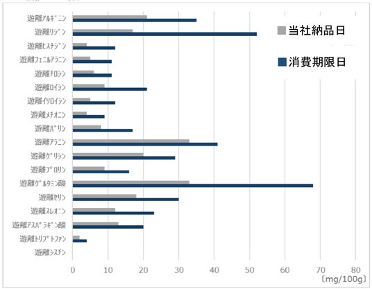 さらに、冷蔵保管中に適度な熟成が進むことで、肉質がより柔らかくなり、うま味成分であるグルタミン酸などのアミノ酸が増加することも確認されています。鮮度保証に加え、時間の経過とともに食感の良さとおいしさが深まる新たな食の価値をお届けしてまいります。