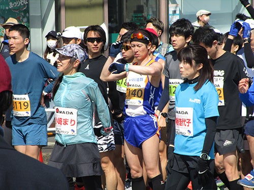 本大会は毎年オリンピアンを何人も招待するなど、ゲストランナーが豪華なことでも知られています。40回の記念大会である今年は、小林祐梨子さん、福士加代子さん、千葉真子さん、土佐礼子さん、市川良子さん、小崎まりさん、趙友鳳さん、小幡佳代子さんといった有名ランナーが市民ランナーとともにゴールを目指し、タレント・モデルの道端カレンさん、道端アンジェリカさんがエールを送りました。
