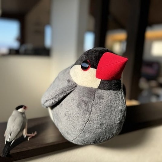 - ”もふもふ感”がたまらない『抱き文鳥ぬいぐるみ』