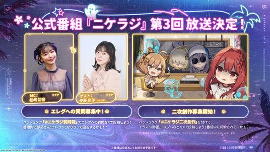 音楽関連では、新テーマ曲の30秒MVや、エレグによるASMR音声の予告、さらにA1 Pictures制作のスペシャルアニメも公開予定であることが明かされ、視聴者の期待が高まります。また、NIKKE初のオーケストラ公演「勝利の旋律 NIKKEオーケストラコンサート」が、2025年7月16日より公式YouTubeチャンネルにてグローバル公開される予定です。さらに、声優・伊藤彩沙さん(エレグ役)をゲストに迎えた公式番組『ニケラジ』第3回の放送も決定。ファン参加型企画として、エレグへの質問募集や二次創作の紹介も行われる予定です。