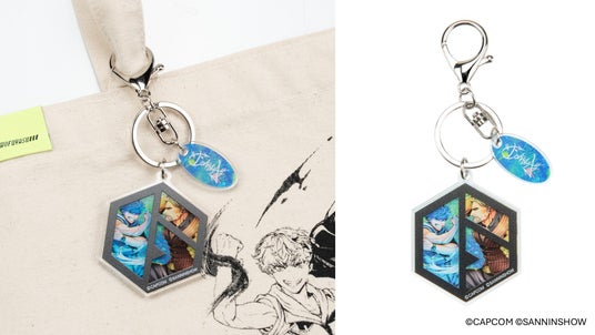 トートバッグは遠出やイベント参加などの荷物が多いシーンに便利なビッグサイズです。線画風のアートにグラフィティサインを刺繍しています。アクリルキーホルダーは「ストリートファイター 6」のロゴマークをフレームのようにすることで、ロゴ越しにアートを楽しめるデザインです。