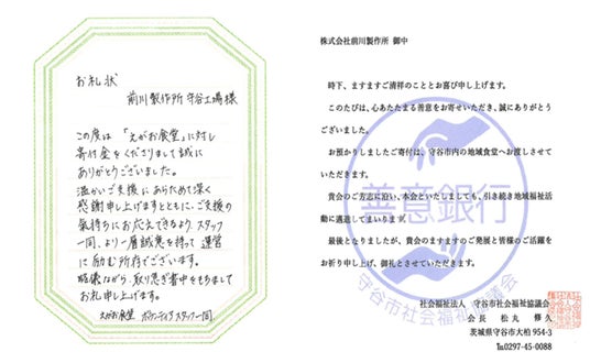 守谷市福祉協議会・地域食堂「えがお」からのお礼状