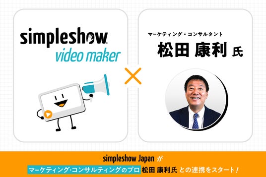 この度、当社は松田 康利氏と協力し、企業や団体の抱えるさまざまなコミュニケーション課題の解決に取り組みます。わかりやすい動画の作成に特化した「simpleshow video maker」 と、これまで数百社のマーケティング活動をサポートしてきた松田氏の知見やアイデアを組み合わせることで、課題に対する新たなアプローチが可能になります。松田氏とともに、当社はブランディングや宣伝広報など、幅広い分野における、より効果的なコミュニケーションを実現してまいります。