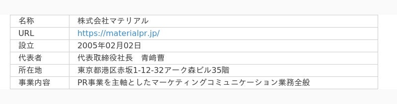 株式会社マテリアル(PR事業を主としたマーケティングコミュニケーション業務全般)