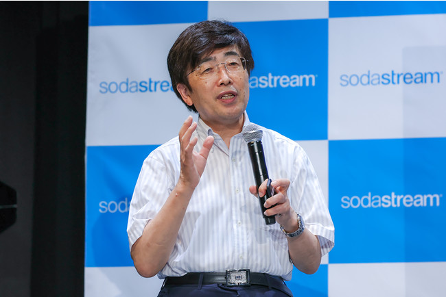 「来年120周年を迎えるソーダストリームは常に新しいイノベーションを取り入れており、今回ご紹介するARTにもそれは表れています。デザインはもちろん、値段、機能においても皆さんにご満足いただける自信があります。ソーダストリームには環境を守るという大きなミッションがあり、ソーダストリームを使えば使うほど使い捨てプラスチックごみを削減できます。1時間に100万本ものペットボトルのごみが排出され、小さなマイクロプラスチックとなって存在し続けている現在に、毎月何万というユーザーが毎月このミッションに参加してくださっていることに感謝いたします。世界45カ国で展開しているソーダストリームですが最も成長率が高いのは日本で、7年で10倍ものマーケットサイズとなりました。日本の皆様がソーダストリームを選ぶことで環境を守り、健康にも良いライフスタイルを選択してくださっていることを嬉しく思います。」と述べました。
