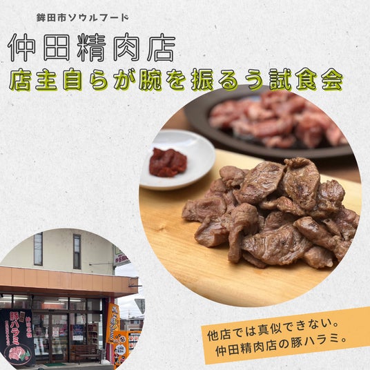 1952年創業、地元に愛される「仲田精肉店」の看板商品で鉾田市のソウルフード「豚ハラミ」。店主自らが腕を振るう試食会を開催。ここでしか味わえない肉の味をご賞味あれ!