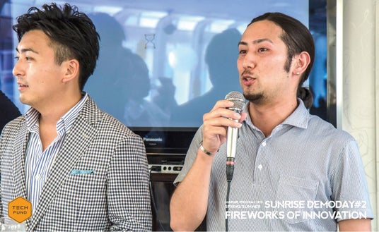 当社主催のアクセラレーションプログラム「SUNRISE PROGRAM 2015」のDEMODAYに参加する松村氏