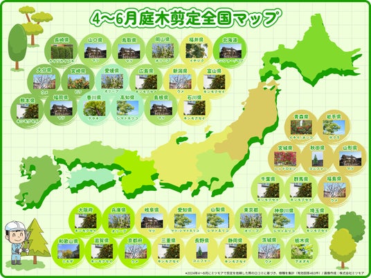 オンラインで見積もり比較・受発注ができるサービス「ミツモア」を運営する株式会社ミツモア(本社:東京都中央区、代表取締役:石川 彩子)は、4~6月にミツモアで剪定依頼をした方の口コミをもとに、地域ごとの剪定樹種の傾向を分析しました。
