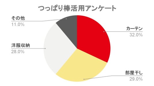 当社がXで行ったアンケート調査によると、つっぱり棒の人気の使い方1位はカーテンの取り付けであることが分かりました。次いで、洋服収納や部屋干しの際に使用されている方が多く、引き出しの間仕切りや浮かせる収納などで使用しているなどの意見がありました。