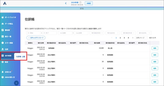 従来、「AWA」で作成された仕訳データは各企業で利用する会計システムへインポートするためのものとして、データのエクスポートのみ対応しておりましたが、今回の「会計帳簿機能」の提供開始により、「AWA」のサービス画面上で仕訳データの確認・編集・削除(解除)等が可能となりました。