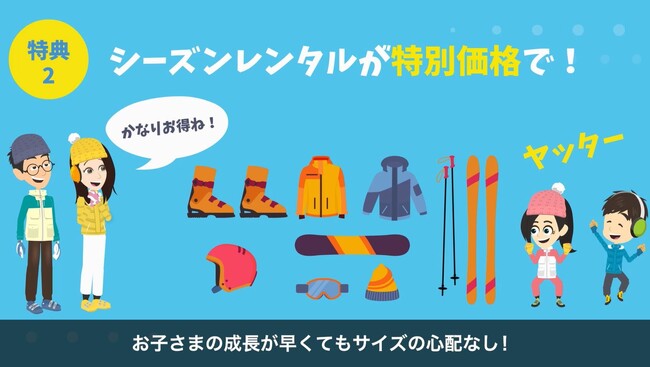 「子供の成長が早く毎年スキー用具のサイズが変わるので大変」そんなお悩みをサポートしていきます。