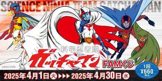 ファンエンゲージメントプラットフォーム「FAM」の企画・開発・運用を手掛ける株式会社Nagisa(本社:東京都渋谷区、代表取締役社長:横山佳幸)は、オンラインくじサービス「FAMくじオンライン」において、<『科学忍者隊ガッチャマン』FAMくじ>を2025年4月1日(火)15:00より販売開始いたします。