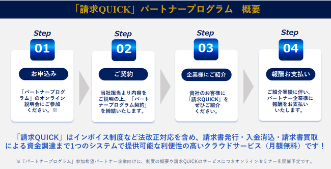 当社は、これまでも高機能でありながら手軽に導入できる価格設定と使いやすさにこだわったサービスの提供を行ってまいりましたが、法改正対応をきっかけにデジタル化による業務効率化を望む中小企業の広がりに合わせ、このたび「請求QUICK」パートナープログラムを開始することにいたしました。パートナープログラムを通じて、パートナー企業とともに、全国の中小企業のみなさまの経理DXをサポートし、事業の成長を支援してまいります。