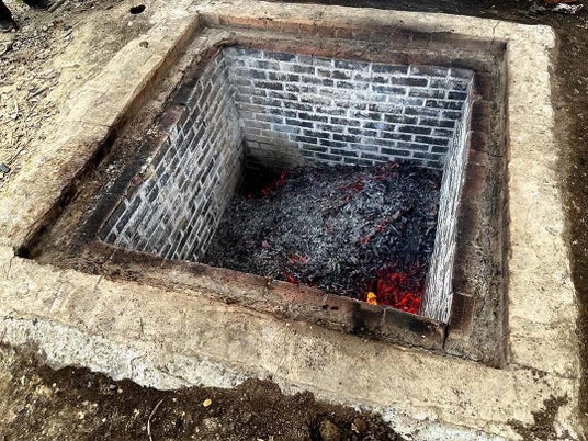 伏せ窯とは、地面に穴を掘ってその中で炭化させる伝統的な炭窯で、竹を高温で焼いて炭化させるという点は他の竹炭窯と同じです。しかし、伏せ窯は耐火煉瓦とコンクリートというシンプルな材料で比較的安価で簡単に作る事ができます。作製にあたり特別な技術も必要ないので、環境への配慮とコスト効率の両方で大きな利点となります。
