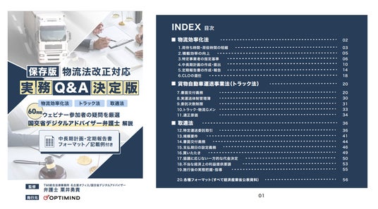 「温かい社会を、技術と支える」をミッションとする株式会社オプティマインド(以下、オプティマインド)は、物流関連二法および取適法の改正に伴い、物流責任者・実務者が直面する具体的な疑問に対する判断基準をまとめたガイドブック『物流法改正実務Q&A決定版』を公開しました。