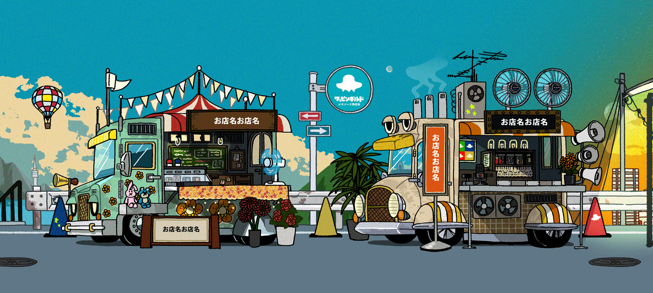 「ワッピンギルド島」の作画は、未来レトロ界隈で、国内外の人気を博するイラストレーター とろろとろろ氏が手がける。 空間のUI/UXは早稲田大学で社会デザイン/空間映像設計・表現を学んだこばやしたけるが総合デザインを担当。その他、国内外の社内外の多様なクリエイターさんにご協力いただきました。
