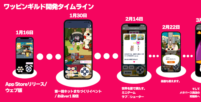 1月30日には「未来でレトロな商店街のカタチ」に関して、直接ワッピンギルド開発チームや特別ゲストと語り合える配信イベントをワッピンギルド上で開催いたします。