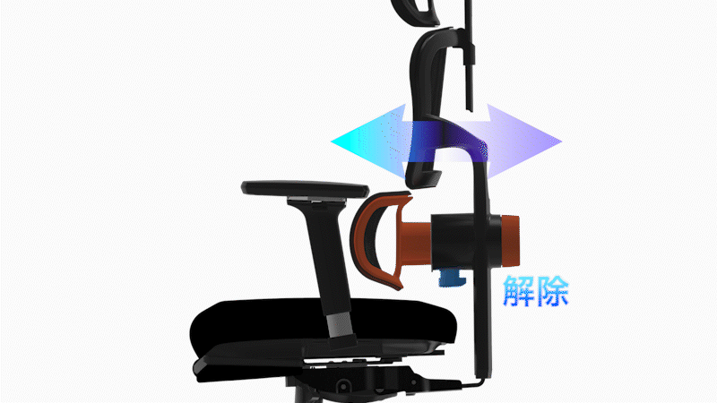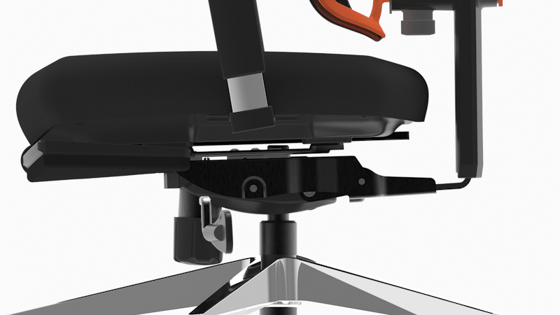 内部にあるバネの伸縮により、腰の動きに合わせて65~115mmまで自動で前後に50mm可動します。