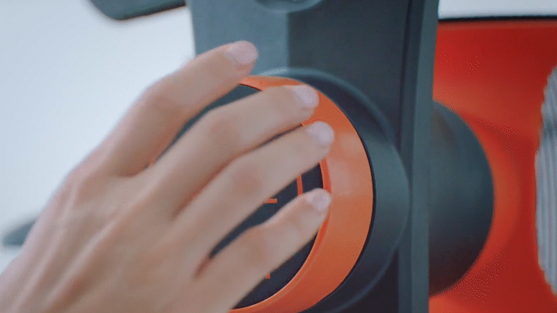 背面の回転操作レバーを左右に回すことで、内部にあるバネの反発力強度を調節できます。