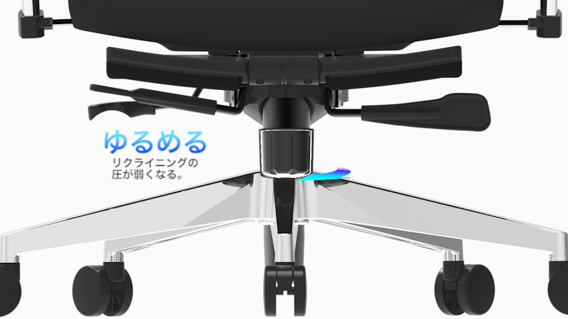 腰の動きに合わせて自動サポートする独自システムにより、長時間座り続けても腰の負担を軽減し、姿勢と集中力を保ちます!
