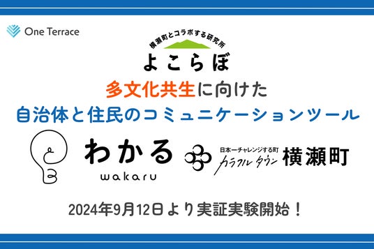 株式会社One Terrace(本社:東京都港区、代表取締役 石中 達也、以下「弊社」)は、今後増加が見込まれる生活者としての外国人と自治体および地域住民や支援者との情報伝達やコミュニケーションの効率化に取り組んでおります。このたび、埼玉県横瀬町(横瀬町長 富田能成、以下「横瀬町」)の官民連携プラットフォーム「よこらぼ」内の実証実験として、町民向けに行政情報発信を行う多文化共生コミュニケーションWEBサイト・アプリ「わかる」を2024年9月12日(木)に導入します。