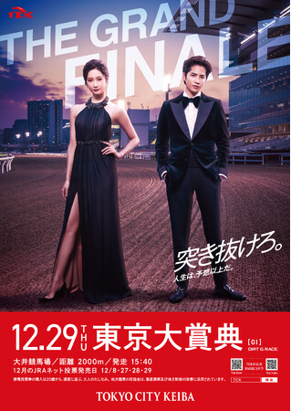 12月29日(木)東京大賞典(GI)の実施を記念して、TCKイメージキャラクターの菜々緒さん、志尊淳さんのオリジナルポスターを抽選で10名様にプレゼントするTwitterキャンペーンを12月22日(木)より実施します。TCK公式Twitterアカウント「@tck_keiba」をフォローのうえ、キャンペーン投稿をリツイートするだけで応募完了!年末のグランプリレースに相応しく、夕暮れの赤紫に染まるコース上でドレッシーに決めたお二人の姿が映える、豪華な1枚となっています。みなさまぜひご応募ください。
