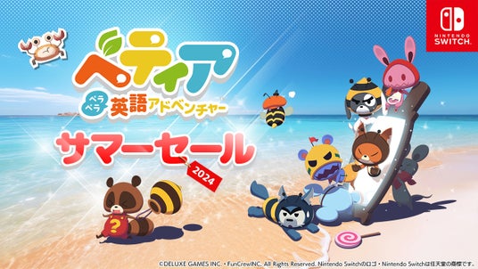 株式会社でらゲー(代表取締役:家次栄一)は、遊びながら英語が自然に学べるNintendo Switch(TM)向け体験型英会話学習ゲームソフト『ベティア ペラペラ英語アドベンチャー』について、本日7月25日(木)より「ベティア サマーセール2024」を開催中です。