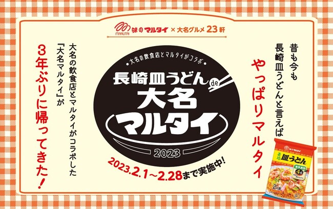 福岡で30年以上、情報誌「NASSE(ナッセ)」を発行している、株式会社サンマーク(本社:福岡市中央区大宮、代表取締役社長:阿多浩一)。この度、2023年2月1日から2月28日までの1ヶ月間、『長崎皿うどん』でおなじみ株式会社マルタイ×ナッセ編集部の企画で「大名マルタイ2023」を開催。『長崎皿うどん』を使用したコラボ料理が大名エリアの飲食店23軒で提供されます。