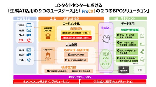 なお、本内容は2025年9月25日に当社が公表した『次世代型コンタクトセンターへの革新に向けた生成AI活用支援ソリューション』における「ProCXの2つの生成AIを活用したBPOソリューション」を実践し、「生成AI活用の9つのユースケース」を具現化した事例となります。