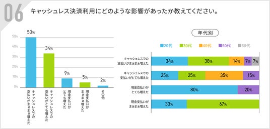 「新紙幣発行がキャッシュレス決済利用に影響した」と回答した人に、どのような影響があったのか具体的に聞いたところ「キャッシュレスでの支払いがまぁまぁ増加した」「キャッシュレスでの支払いがとても増えた」と回答した人を合わせて84%という結果となりました。
