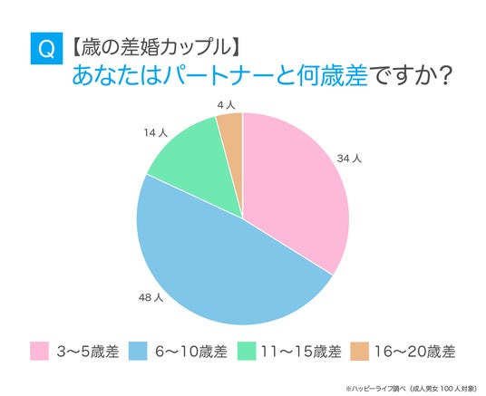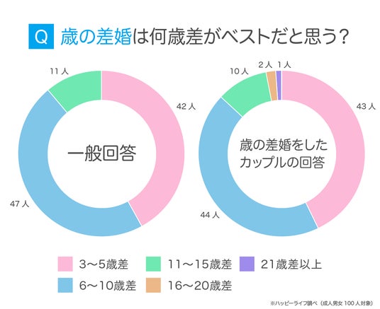 そこで今回の記事では、累計会員数3500万(※1)を誇る出会い、恋愛マッチングアプリサービス「ハッピーメール( https://happymail.co.jp/ )(運営:株式会社アイベック 本社:福岡県福岡市)」にて、男女100人を対象に、歳の差婚に関するアンケート調査を実施しました。
