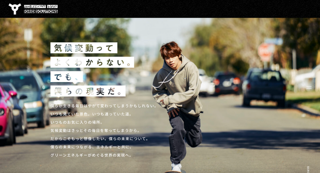 そうした活動を通して、海外と国内の気候変動に対する意識の差をとても強く感じています。気候変動は遠い未来の心配事ではなく、今取り組むべき課題の一つであると考えています。今回、国内での気候変動への意識を高めてもらうきっかけになればという思いで、堀米選手と共同でコンセプトムービーを作成しました。今後も、再生可能エネルギー普及や脱炭素の推進をはかり、グリーンエネルギーが地域をめぐるサスティナブルな世界の実現を目指していきます。