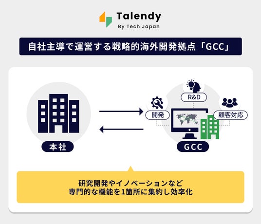 高度インド人材に特化したHRプラットフォーム「Talendy」を展開するTech Japan株式会社(本社:東京都、代表取締役:西山 直隆)は、日本企業がインドにおいて自社の戦略的開発拠点「グローバル・ケイパビリティ・センター(GCC)」を手軽に構築・運営できる新サービス「Talendy GCC」を正式にリリースいたします。 本サービスは、EOR(雇用代行)スキームと独自の採用データベースを活用することで、現地法人の設立や大規模な初期投資を不要とし、最短かつ最小リスクでインドの高度IT人材による自社開発チームの立ち上げを可能にします。