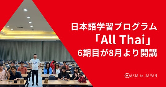 海外の主要大学内での日本語学習などを通じ、日本への就職のきっかけを学生に提供する株式会社ASIA to JAPAN(代表:三瓶 雅人 本社:東京都台東区 以下:ASIA to JAPAN)は、8月より、タイの理系大学生を対象としたオンライン日本語学習プログラム「All Thai(オールタイ)」の6期目を開講します。